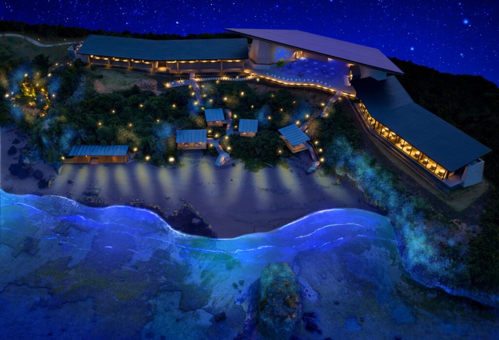期間中は、目の前に広がる海や白砂のビーチなど様々な場所をライトアップし、崖の上から海へと続く敷地全体が光につつまれます。