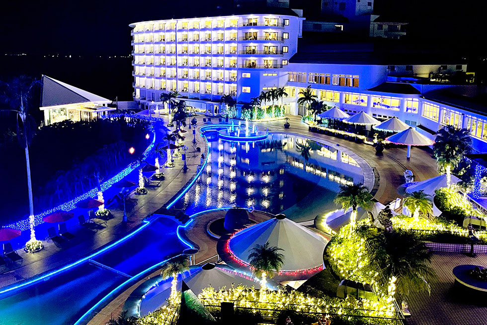 フロントロータリーを中心に、広大な敷地内のガジュマルの木も華やかに装飾し、南国リゾートの夜を演出いたします。