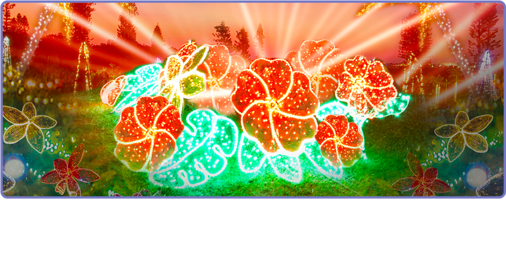 今年は「生命の水・輝く南国の花」をテーマに、夏に満開となる蓮をイルミネーションで再現した「ひかりの蓮」や新エリア として「光のキャッスル 生命の滝」、南国を象徴する「ハイビスカスエリア」も登場します。