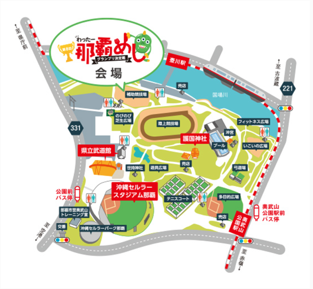 | 開催場所 | 奥武山公園 補助競技場 最寄駅:壺川駅 から徒歩 約5分、奥武山公園駅 から徒歩 約8分 最寄バス停:「公園前」「軍桟橋前」「奥武山公園駅前」 ![]() |