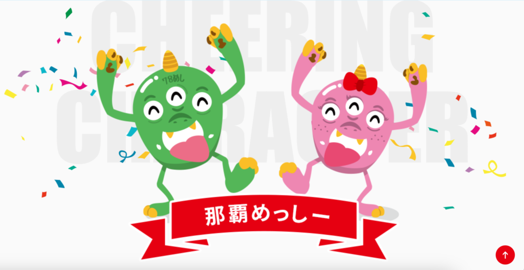 那覇めっしーとは、3つの大きな目で那覇の街のうまいものをくまなく見つけては、手づかみで勢い良く食べるとのこと。そのため手は常に汚れており、口のまわりには米粒、食べかすがついているということ・・・