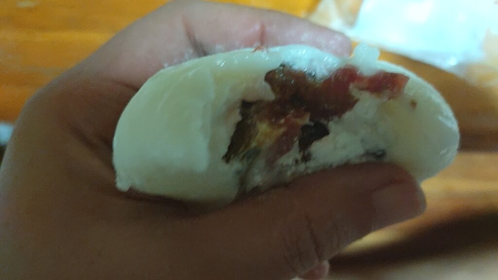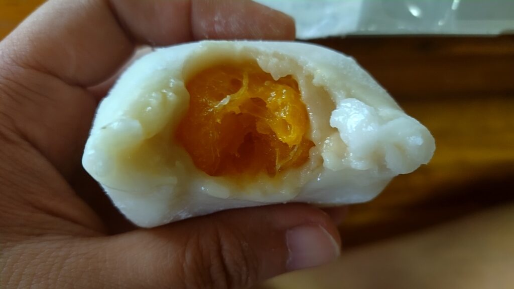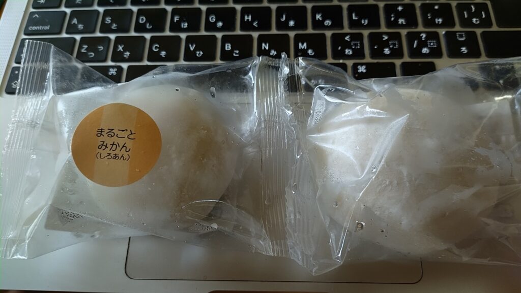 周りのモチ部分が少し甘いかなと思ったんですが、中身の冷凍みかんのさっぱりさがカバーして、スイーツとして申し分ない美味しさでした。
