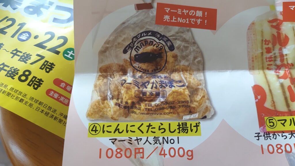知ってる方も多いかもしれませんが、マーミヤかまぼこの人気No.1、にんにくのたらし揚げ!