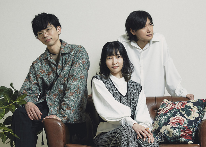 左より、⽥中秀樹(Gt)⾦城美織(Vo)、佐々⽊皓太 (Vo、DJ、Composer)