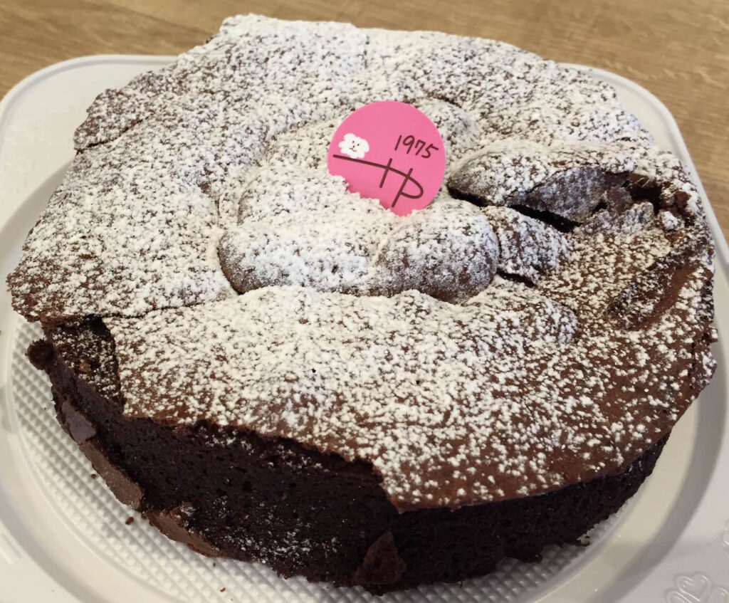 いつ見ても長蛇の列のハッピー洋菓子店のチョコレートケーキ。
