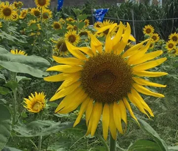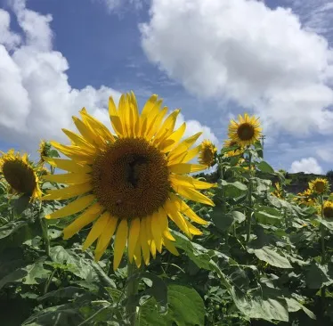 沢山のミツバチと、バッタが飛び交ってるのも農薬がかかってないのかな?ひまわりは種を植えればあとは勝手に育ちます。一度ひまわりを育てたことがある人はお分かりかと思いますが、ぐんぐん成長します。