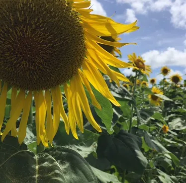 沖縄の太陽の光を沢山浴びて、たくさんのひまわりが育っています