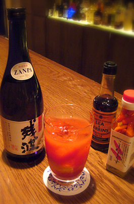 - 材料(1人分):残波の黒45ml、トマトジュース適量、塩、コショウ、コーレーグース、ウスターソース、レモン